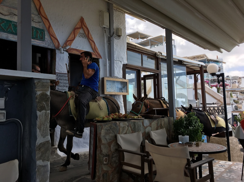 ロバを操縦しながら携帯で話してるw